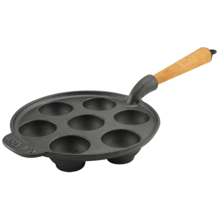 De runda fördjupningarna formar jämna, gyllene bollar med krispig yta och härligt fluffigt inre – perfekta att fylla med äpple, sylt eller andra favoriter. Det massiva gjutjärnet fördelar värmen jämnt och håller en stabil temperatur, vilket ger ett perfekt gräddat resultat varje gång. Pannan är inbränd med vegetabilisk olja vid 400 °C och redo att användas direkt på alla typer av värmekällor, inklusive induktion och öppen eld. Ett pålitligt redskap som lyfter både vardagsbak och festliga tillfällen.