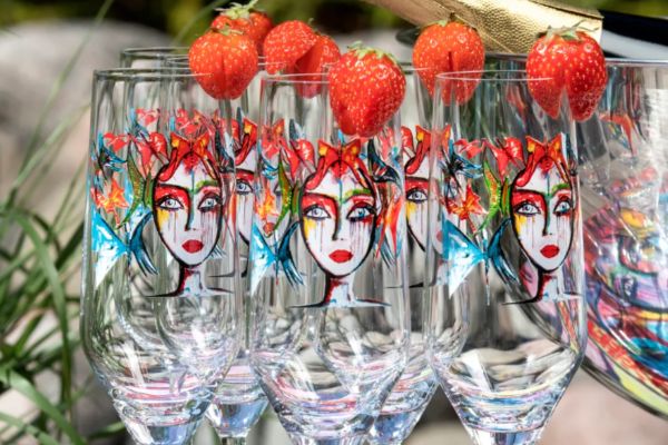 Carolina Gynnings uttrycksfulla motiv finns på muggar, vinglas, champagneglas, vitvins/rosévinsglas, drinkglas, cocktailglas och vattenglas. Du kan alltså fylla ditt hem med Carolina Gynnings vackra servisglas!