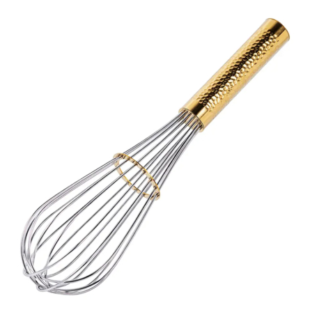 Den karakteristiska hamrade mässingsfinishen ger vispen ett exklusivt uttryck och gör den till ett vackert inslag bland köksredskapen. Kombinationen av funktion och design gör att den passar lika bra i det moderna köket som i mer klassiska miljöer.