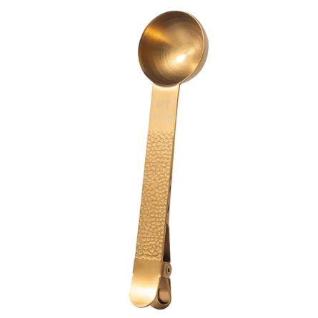 Den integrerade klämman gör skeden extra praktisk – använd den för att enkelt försluta kaffepåsen efter dosering. På så sätt hjälper den till att bevara kaffets arom och fräschör längre.