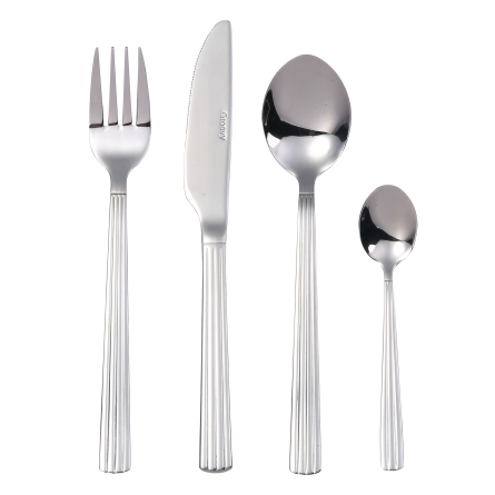 Aida Groovy Bestick - Med sin klassiska design och distinkta räfflade mönster har det nya Groovy-besticket från Aida en modern men tidlös look. Tillverkat av rostfritt stål som tål maskindisk. Levereras i en elegant presentförpackning. Setet innehåller 12 knivar (22,5 cm), 12 gafflar (20 cm), 12 skedar (20 cm) och 12 kaffeskedar (13,5 cm). Ge din dukning en touch av elegans med detta förstklassiga bestickset från Aida.