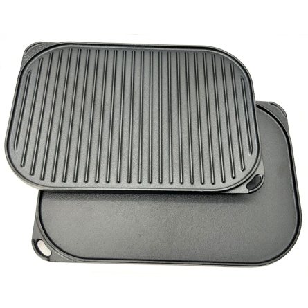 Ta din matlagning till nästa nivå med Carl Victor vändbara grill- och stekplatta i massivt gjutjärn. En mångsidig favorit i köket som klarar allt från perfekt grillade köttbitar och krispiga grönsaker till fluffiga pannkakor och gyllene omeletter. Den räfflade sidan ger snygga grillränder och låter överflödigt fett rinna undan, medan den släta sidan är idealisk för stekning och bakning med jämnt resultat. Den nitrerbehandlade gjutjärnskärnan ger en extra slitstark och rosttålig yta som tål hård användning och håller i generationer – ett pålitligt redskap för både vardag och fest.